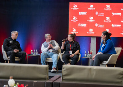 Im Rahmenprogramm der Messe standen KI und Nachhaltigkeit im Fokus. So gingen die Referenten in der Event-Arena gemeinsam mit dem Gastronomie-Experten Jan-Patrick Timmer der Frage nach, wie sich Ökonomie und Ökologie in der Gastronomie verbinden ließen. Die Köchin und Bioland Beraterin in der Außer-Haus-Verpflegung (AHV), Nóra Horváth, befand: „Wir brauchen einen kreativen Umgang mit heimischen und saisonalen Produkten.“ Sie empfahl der Branche, offen und neugierig zu bleiben.