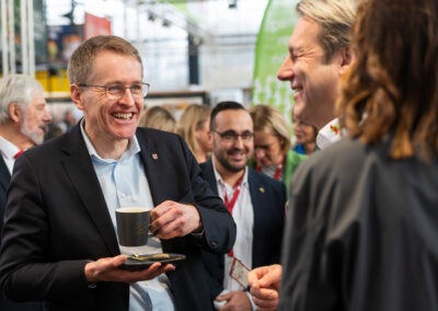 Besucherinnen und Besucher der Nord Gastro & Hotel fanden Bio-Lebensmittel unter anderem in dem Bereich von „Gutes vom Hof.SH“ – einem gemeinschaftlichen Direktvermarktungs-Portal für Schleswig-Holstein. Hier gab es Trockenfrüchte oder Milchprodukte und regionale Weine – oder auch Wildleberwurst und Geflügelgerichte in Gläsern von einem Gut bei Kappeln. „Wir sind zum ersten Mal auf der Nord Gastro & Hotel“, sagte Fleischermeister Claus Jessen, “und ich kann nur Gutes berichten“. Die regionalen Produkte von Tieren aus eigener Haltung oder Jagd kämen besonders gut an bei Betreibern von Hotels und Tiny Häusern oder bei Feinkosthändlern. Er habe auf der Messe viele Fachgespräche geführt und schon einige Neuaufträge erhalten.