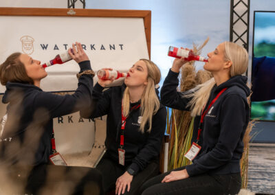 Wer auf der Suche nach Inspirationen für die Gästebewirtung war, wurde in allen drei Hallen der Fachmesse fündig. Bei den Durstlöschern waren alkoholfreie Varianten bekannter alkoholischer Getränke weiter auf dem Vormarsch. Zudem wurde bei neuen Limonadensorten neben hochwertigen Inhaltsstoffen auch auf zuckerfreie Alternativen Wert gelegt. Stark vertreten war zudem wieder Bier in allen Variationen, aus kleinen und großen Brauereien. Darunter auch fruchtige Biermischgetränke oder Lager für Fußballfans – mit Länderfähnchen an den Flaschenhälsen. Auffällig war auch die Ausschankvariante „Tankbier“, mit denen sich eine Brauerei ein Alleinstellungsmerkmal auf der Messe gesichert hatte. Der 500 Liter-Tank unter dem Ausstellungs-Tresen bot nicht nur einen Showeffekt, sondern präsentierte eine noch junge Möglichkeit, Wirten den häufigen Fasswechsel zu ersparen.